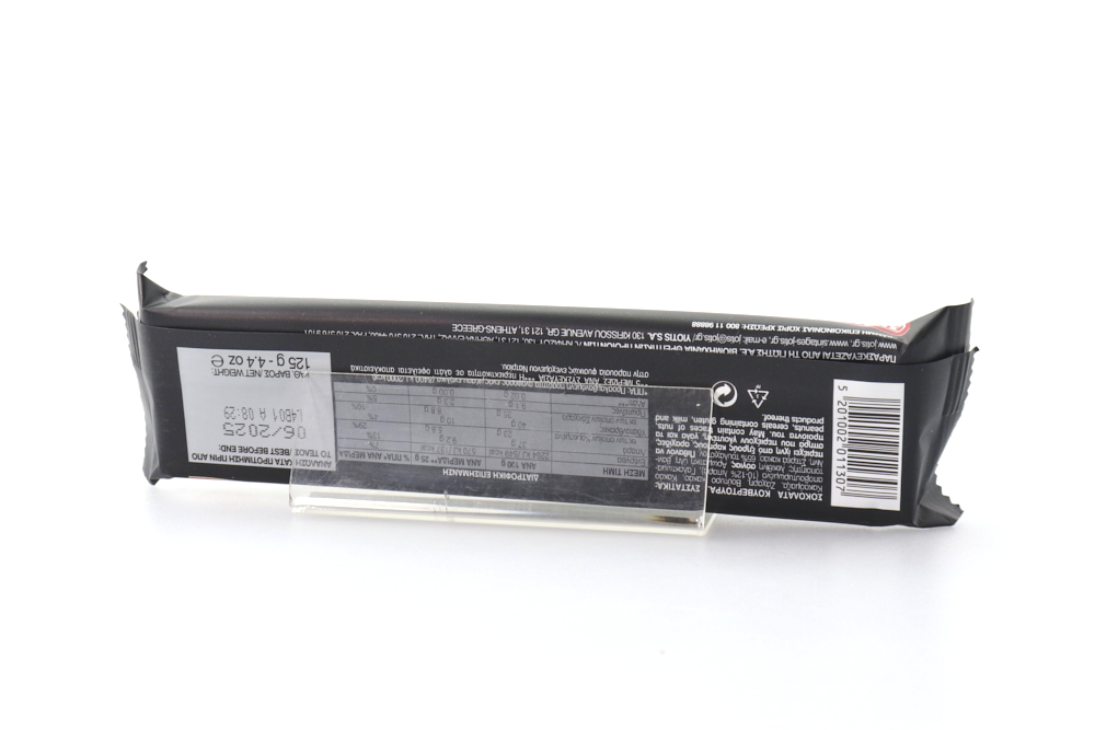 Κακαόμαζα, Ζάχαρη, Βούτυρο κακάο, Kακάο αποβουτυρωμένο (10-12 % λιπαρά) , Γαλακτωματοποιητής: λεκιθίνη σόγιας, Αρωματική ύλη: βανιλίνη. Στερεά κακάο: 65 % τουλάχιστον.