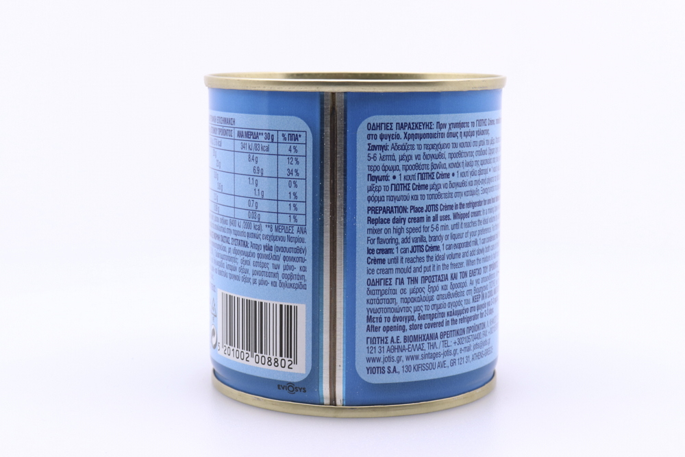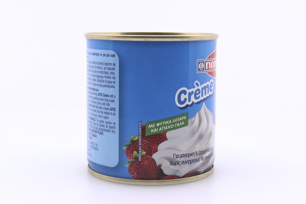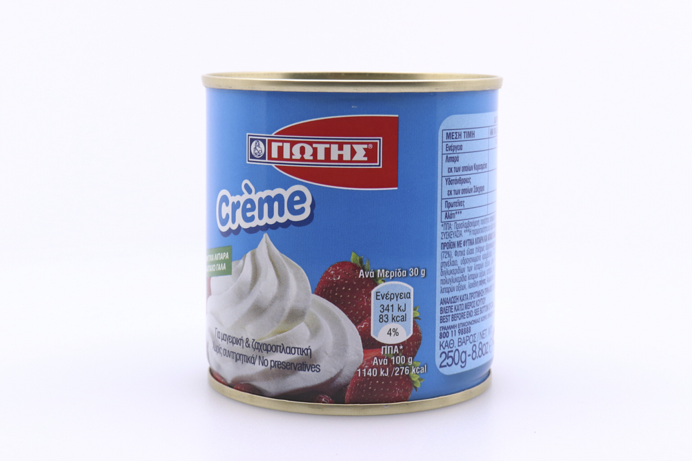 Πριν χτυπήσετε το ΓΙΩΤΗΣ Creme, τοποθετήστε το για μία ώρα στο ψυγείο. Χρησιμοποιείται όπως η κρέμα γάλακτος.
