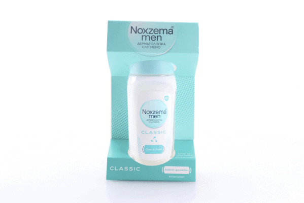 To ανδρικό αντιιδρωτικό αποσμητικό rollon Noxzema Men Classic, με κλινικά αποδεδειγμένη απαλότητα και τεχνολογία Clean & Fresh, ειδικά ελεγμένη στο ανδρικό κοινό, απελευθερώνει άρωμα φρεσκάδας που διαρκεί, εξασφαλίζει έλεγχο της εφίδρωσης και προσφέρει αποτελεσματική 48ωρη προστασία από τον ιδρώτα και την κακοσμία. Είναι δερματολογικά ελεγμένο, φιλικό με την επιδερμίδα, έχει σύνθεση ενάντια στα λευκά σημάδια, διακριτικό αρρενωπό άρωμα και δεν περιέχει οινόπνευμα. Εφαρμόστε ένα λεπτό στρώμα στην περιοχή της μασχάλης.