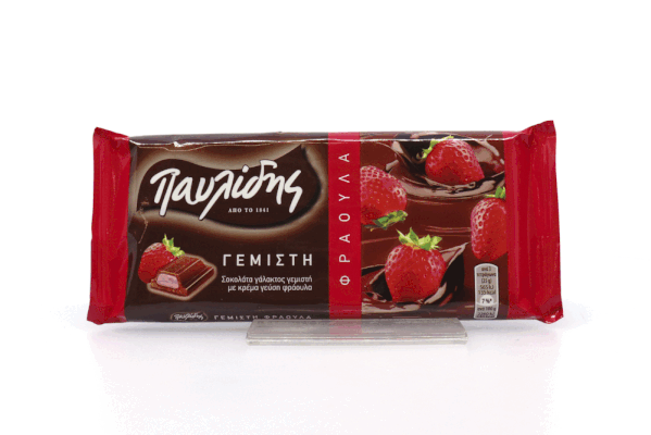 Απολαυστική σοκολάτα γάλακτος γεμιστή με κρέμα φράουλα! Δώστε στη μέρα σας τη γεύση που επιθυμείτε με μία σοκολάτα γάλακτος Παυλίδης γεμιστή!