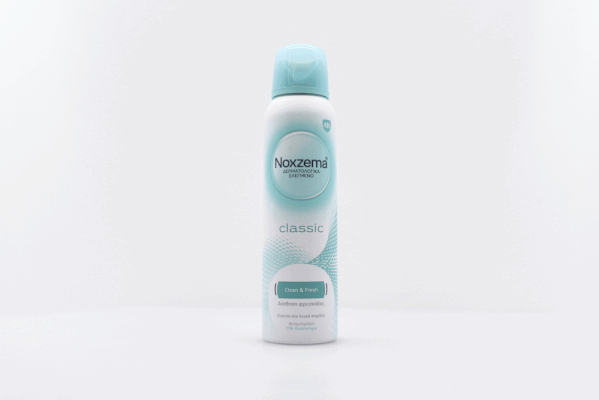 To γυναικείο αντιιδρωτικό αποσμητικό spray Noxzema Classic, με κλινικά αποδεδειγμένη απαλότητα και τεχνολογία Clean & Fresh, απελευθερώνει άρωμα φρεσκάδας που διαρκεί, εξασφαλίζει έλεγχο της εφίδρωσης και προσφέρει αποτελεσματική 48ωρη προστασία από τον ιδρώτα και την κακοσμία. Το rollon Noxzema Classic είναι δερματολογικά ελεγμένο, φιλικό με την επιδερμίδα, έχει σύνθεση ενάντια στα λευκά σημάδια και δεν περιέχει οινόπνευμα. Εφαρμόστε ένα λεπτό στρώμα στην περιοχή της μασχάλης.