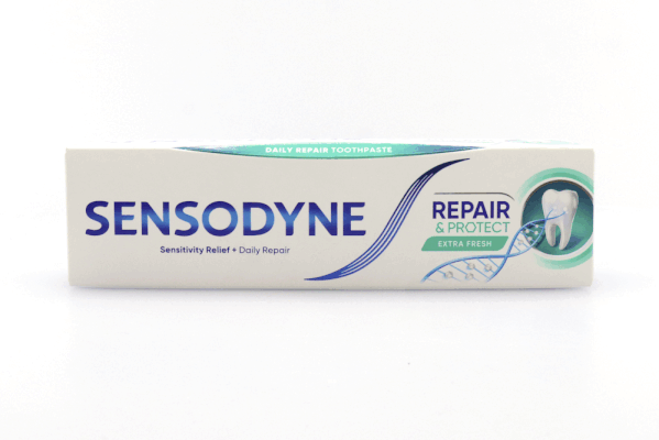 .Η Sensodyne Repair & Protect Extra Fresh, με NOVAMIN, έχει μία μοναδική, κλινικά αποδεδειγμένη σύνθεση με ασβέστιο. Βοηθά στην αναδόμηση βαθιά μέσα στα οδοντινικά σωληνάρια με τα φυσικά δομικά στοιχεία των δοντιών. Ανακουφίζει από τον πόνο της ευαισθησίας και σας βοηθά να απολαμβάνετε τη ζωή χωρίς να ανησυχείτε για τον πόνο των ευαίσθητων δοντιών. Η Νο.1 μαρκα που συστήνουν οι οδοντίατροι για ευαίσθητα δόντια. Οι οδοντίατροι συστήνουν τη Sensodyne για πολλά χρόνια. H Sensodyne Repair & Protect Extra Fresh είναι μια φθορίουχος οδοντόκρεμα για καθημερινή χρήση και παρέχει καθημερινή φροντίδα για τα ευαίσθητα δόντια.
