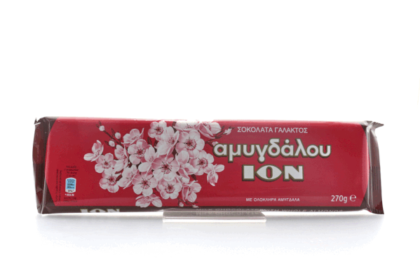 Η αγαπημένη απ΄ όλους ΙΟΝ Αμυγδάλου, η πιο διαχρονική σοκολάτα της Ελληνικής αγοράς με την ιδιαίτερη γεύση και τα ολόκληρα, φρεσκοκαβουρντισμένα αμύγδαλα.