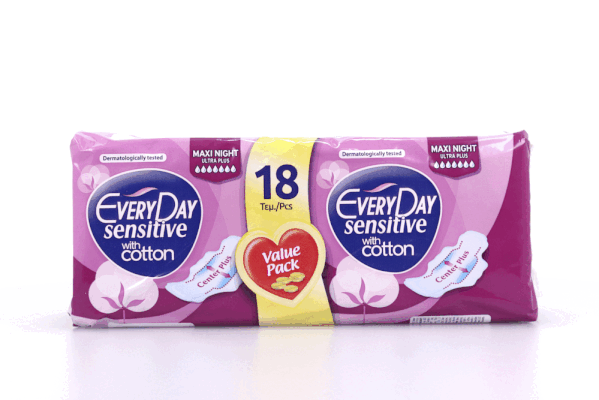 Μεγαλύτερου μήκους λεπτές σερβιέτες, με φτερά προστασίας. 30% πιο μακριές από τις σερβιέτες EveryDay Sensitive Normal, είναι κατάλληλες για τη νύχτα ή για περιπτώσεις μεγάλης ροής. Με υγιεινό υφασμάτινο κάλυμμα που περιέχει βαμβάκι και επιτρέπει στο δέρμα να αναπνέει. Με την επαναστατική τεχνολογία Center Plus, με διευρυμένο πυρήνα, που εξασφαλίζει έως και 30% μεγαλύτερη απορροφητική επιφάνεια στο κέντρο της σερβιέτας, σε σχέση με άλλες λεπτές σερβιέτες, για ασύγκριτη προστασία από διαρροές, εκεί που χρειάζεται περισσότερο. Οι πρώτες στην Ευρώπη με τη διεθνή πιστοποίηση Oeko-Tex Standard 100, για απουσία βλαβερών ουσιών. Οι πρώτες που συνέστησε η Ένωση Μαιευτήρων Γυναικολόγων Ελλάδος. Δερματολογικά ελεγμένες. Παράγονται στην Ελλάδα. Σε οικονομική συσκευασία των 18 τεμαχίων.