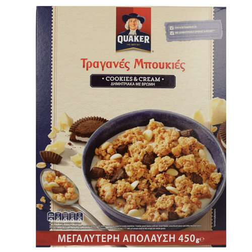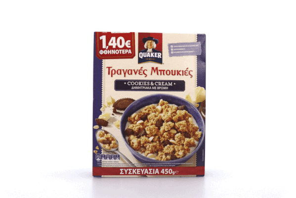 QUAKER ΤΡΑΓΑΝΕΣ ΜΠΟΥΚΙΕΣ 450gr. - (COOKIES & CREAM)