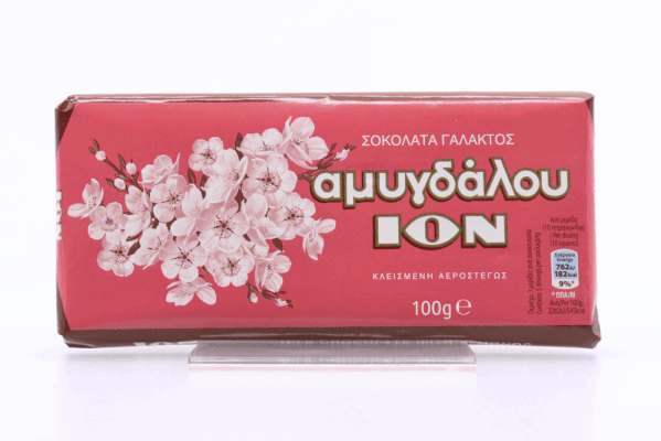 Η γνωστή σε όλους ΙΟΝ Αμυγδάλου, η πιο διαχρονική σοκολάτα της Ελληνικής αγοράς με την ιδιαίτερη γεύση και τα Ελληνικά φρεσκοκαβουρντισμένα αμύγδαλα.