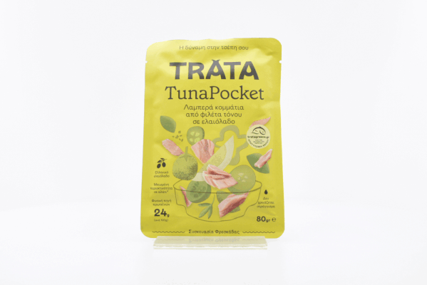 Λαμπερά κομμάτια από φιλέτα τόνου TRATA σε ελληνικό ελαιόλαδο, σε συσκευασία pocket, χωρίς στράγγισμα για άμεση χρήση & απαράμιλλη γέυση! Απογειώνει τα πιο φρέσκα υλικά και δημιουργεί τον απόλυτο Μεσογειακό συνδυασμό γεύσης στο πιάτο σου. Έχεις τη δύναμη στην τσέπη σου!