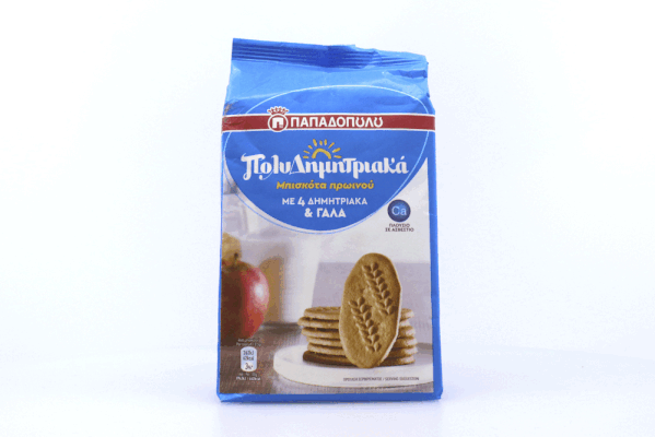 Πολυδημητριακά Μπισκότα Πρωινού με γάλα, για εσάς που αναζητάτε μία εύκολη και γρήγορη επιλογή για το πρωινό σας! Περιέχουν 4 δημητριακά.