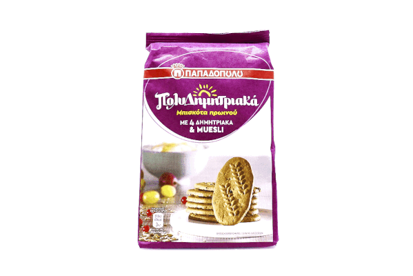 Πολυδημητριακά με Muesli, το ιδανικό μπσκότο για το πρωινό σας. Αποτελούν πηγή φυτικών ινών & είναι πλούσια σε βιταμίνες.