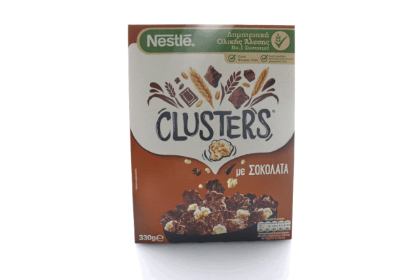 Απόλαυσε τα CLUSTERS® Με Σοκολάτα, τον μοναδικό συνδυασμό από νιφάδες σιταριού ολικής άλεσης με κακάο, τραγανές μπουκίτσες και νιφάδες με επικάλυψη σοκολάτας γάλακτος, για εξαιρετική γευστική εμπειρία σε κάθε μπουκιά! Τώρα με 5 Βιταμίνες, Ασβέστιο και Σίδηρο. Ο απόλυτος συνδυασμός ενός απολαυστικού και θρεπτικού πρωινού!