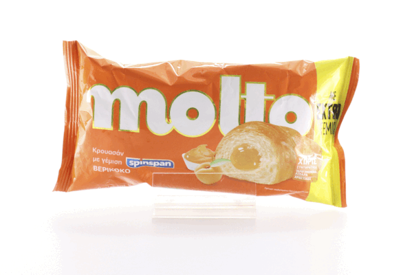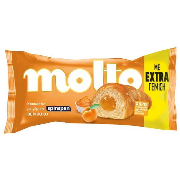 Κρουασάν με γέμιση βερίκοκο. Συστατικά: Ζύμη: αλεύρι σίτου, φυτικά έλαια (φοινικέλαιο, ηλιέλαιο), ζάχαρη, σιρόπι γλυκόζης-φρουκτόζης, μαγιά, αλάτι, σταθεροποιητής (μόνο- και διγλυκερίδια των λιπαρών οξέων), βανιλλίνη, μέσο οξίνισης (κιτρικό οξύ). Γέμιση βερίκοκο 33%: βερίκοκα, σιρόπι γλυκόζης-φρουκτόζης, ζάχαρη, αρωματικές ύλες, πηκτικό μέσο (πηκτίνη), μέσο οξίνισης (κιτρικό οξύ). Η γέμιση βερίκοκο περιέχει 55% βερίκοκα. Αλεύρι σίτου.Παράγεται σε εργοστάσιο που διαχειρίζεται ως πρώτες ύλες: προϊόντα γάλακτος, αυγά, αραχίδες, φουντούκια, αμύγδαλα, φυστίκια, καρύδια Πεκάν, σουσάμι, σέλινο. Παράγεται σε εργοστάσιο που διαχειρίζεται ως πρώτες ύλες: προϊόντα γάλακτος, αυγά, αραχίδες, φουντούκια, αμύγδαλα, φυστίκια, καρύδια πεκάν, σουσάμι, σέλινο. Διατηρείται σε δροσερό και ξηρό μέρος